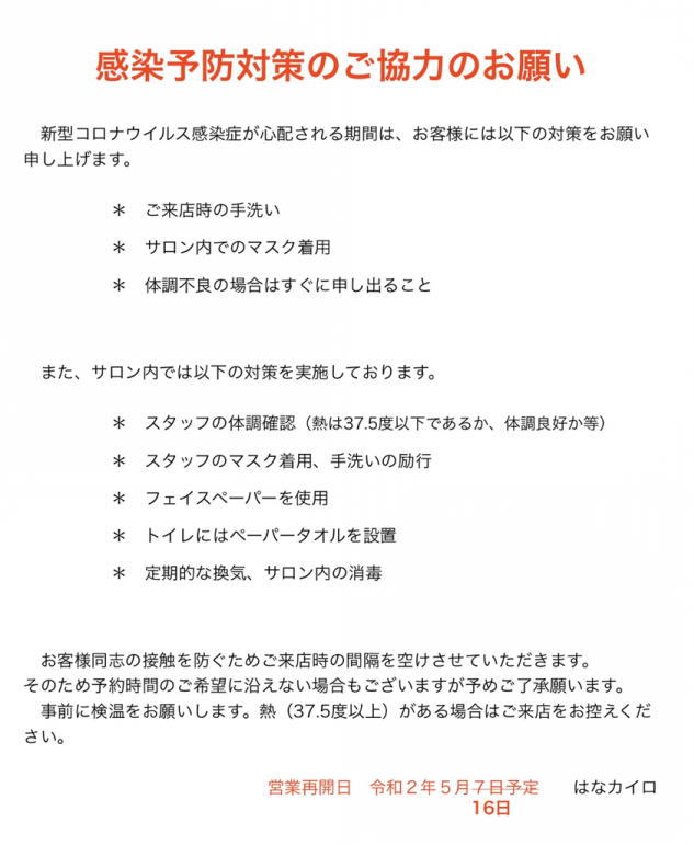 2. 新型コロナウィルス感染拡大予防の為、休業延長のお知らせ
